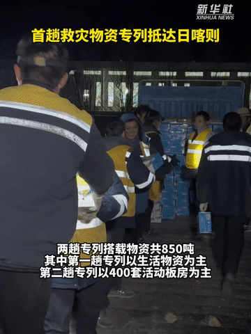定日縣6.8級地震|首趟救災物資專列抵達日喀則