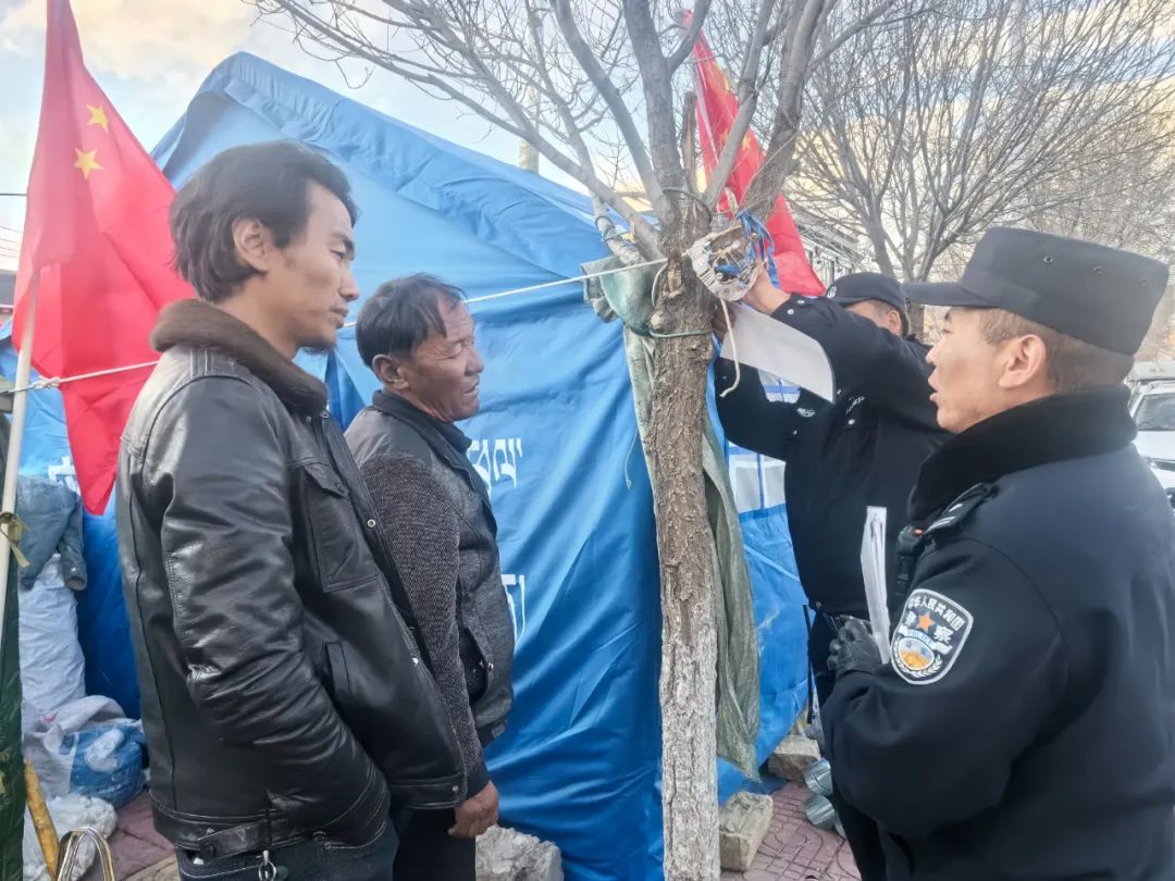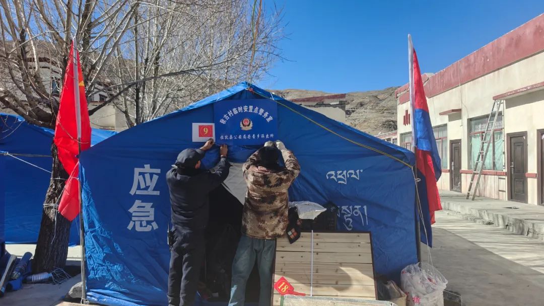 災情如令,責任重于泰山。在這場爭分奪秒與時間賽跑的抗震救災戰(zhàn)斗中,拉孜公安始終堅定地與群眾并肩同行,以“伴隨式”守護的帳篷警務室,為受災群眾筑牢安全防線。一頂頂 “帳篷警務室” 以迅雷不及掩耳之勢搭建完成,恰似一座座堅固的堡壘;一面面鮮艷的黨旗在廢墟之上獵獵作響,傲然飄揚,它們共同構成了守護受災群眾生命財產安全的鋼鐵長城,成為抗震救災戰(zhàn)場上一道令人動容的亮麗風景線 。