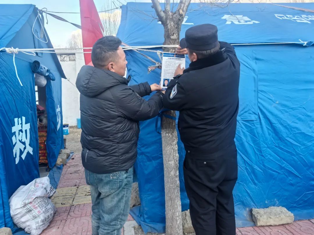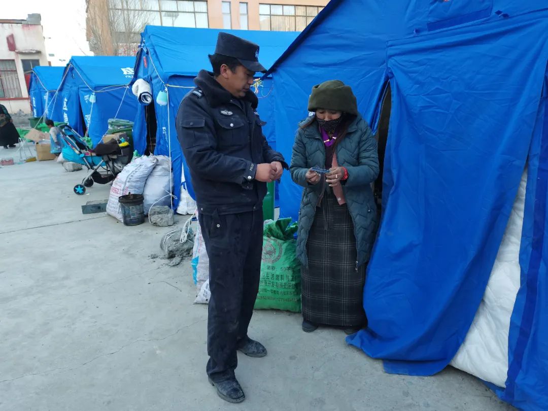 天還未亮,民輔警已投身救災一線,忙碌于清點救援物資。緊接著,他們步履不停,深入每一村每一戶,細致收集家庭基本信息,評估受災程度及房屋損毀情況,并逐一核實帳篷內供暖、供電等基本生活需求的落實情況。走訪之際,一張張警民聯(lián)系卡被張貼于顯眼位置,親手遞到群眾手中,旨在迅速響應群眾訴求,引導合理表達困難與期望。同時,他們對孤寡老人、殘疾人、精神病患者、流浪人員及重癥病患等特殊群體給予了特別關注,積極協(xié)調資源,切實解決其實際難題,構建起一座堅實的警民溝通橋梁。為確保轄區(qū)安寧,民輔警們進一步加大了社會面巡邏力度,細致排查潛在矛盾糾紛,全力預防偷盜、詐騙、搶劫等違法犯罪行為,當?shù)弥罕娯斘锉焕颐媾R損毀,他們不顧危險,憑專業(yè)技能穿梭廢墟,爭分奪秒搶救財物,全力守護群眾財產安全。在這過程中,民輔警不辭辛勞,反復穿梭于村落之間,確保救助工作覆蓋到每一個角落,每一個人,無論多少次往返,只為確保“不漏一戶,不落一人”?!熬焱荆銈冃量嗔?!”“感謝你們的付出,為你們點贊加油!我們一起努力戰(zhàn)勝災情!”……群眾一句句暖心的話語,化作源源不斷的動力,讓民輔警們更加堅定了抗震救災必勝的信心 。
