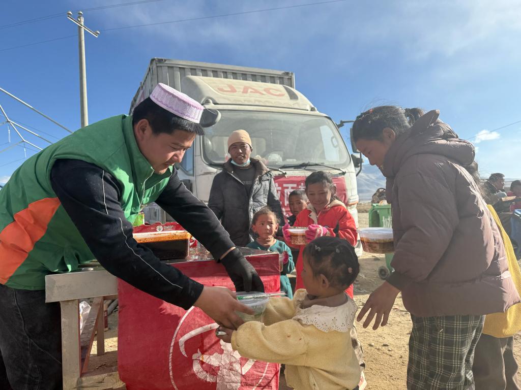西藏定日6.8級(jí)地震發(fā)生后第二天,看到地震的消息,馬杰和朋友立馬帶上物資奔赴災(zāi)區(qū)救援一線。一行5人從甘肅臨夏出發(fā),驅(qū)車2700多公里,10日到震中后便開始給受災(zāi)群眾免費(fèi)做拉面。