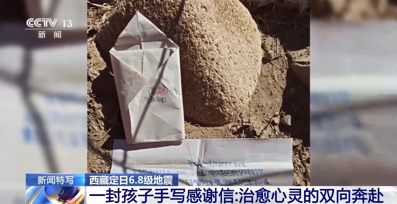 12日中午,消防員旦增赤列在曲洛鄉(xiāng)班久崗村安置點(diǎn)忙碌時(shí),一個(gè)女孩突然將一個(gè)疊好的小紙包塞到他手里。裝信的紙包上寫著“謝謝你們,消防員叔叔”。