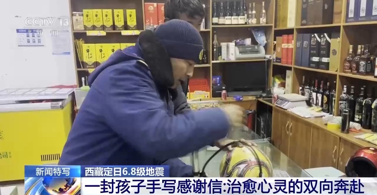 曲洛鄉(xiāng)野江村安置點(diǎn)內(nèi)有近一百名孩子。10日晚,一群小朋友把一個(gè)踩扁的易拉罐踢著玩,還拉著忙完的消防員一起切磋“球”技。這個(gè)視頻被日喀則市森林消防大隊(duì)的消防員隨手記錄下來并發(fā)在工作群里,一名消防員看到后,當(dāng)晚驅(qū)車到縣城買了一個(gè)足球。