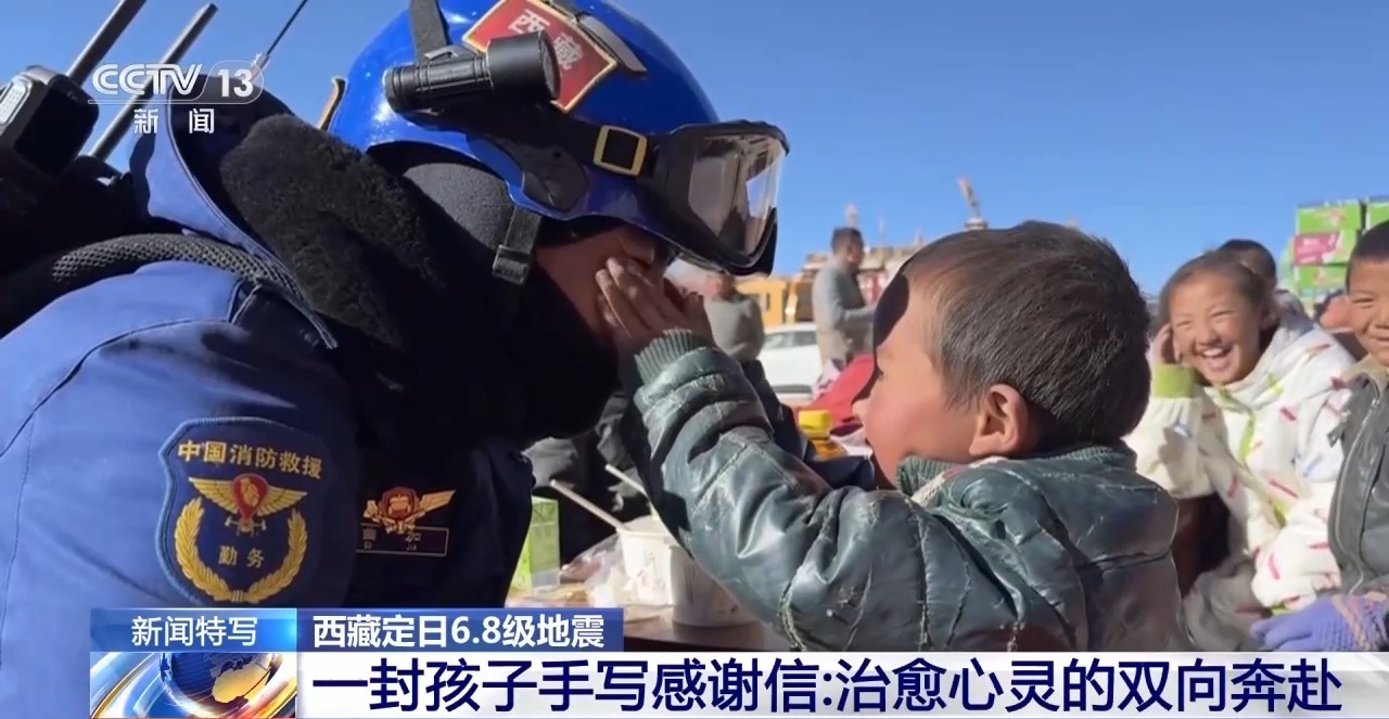 阿旺吉巴:當(dāng)時(shí)地震的時(shí)候確實(shí)挺害怕,所以消防員叔叔來的時(shí)候非常感動(dòng),所以想跟你們說一聲謝謝。
