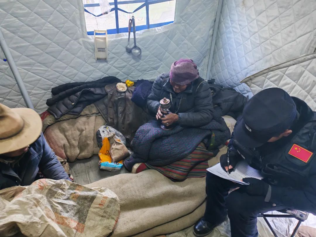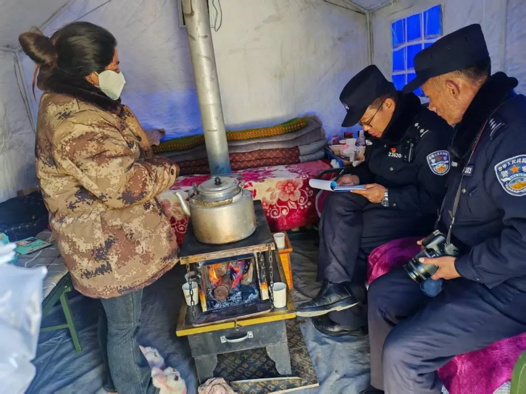 民輔警們穿梭于安置點的帳篷間,每到一處,都與群眾親切交談?!巴砩纤X冷不冷?”“吃飯還習(xí)慣嗎?”簡單的話語,飽含著無盡的關(guān)切。他們神情專注,認真傾聽群眾的反饋,無論是基本的衣食住行問題,還是特殊的醫(yī)療需求,都詳細記錄在冊。對于行動不便的老人與殘疾人,民輔警們更是格外關(guān)注,耐心細致地詢問他們在生活中遇到的種種困難,力求在第一時間給予解。