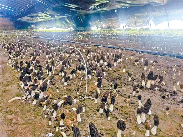 圖為大棚內(nèi)的羊肚菌。本網(wǎng)記者 貢秋曲措 通訊員 梁俠 牛繼平 攝