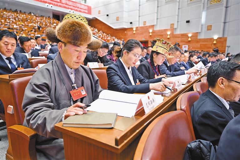 19日上午,自治區(qū)十二屆人大三次會議在拉薩開幕。圖為代表們認(rèn)真聆聽政府工作報告。記者 旦增西旦 攝