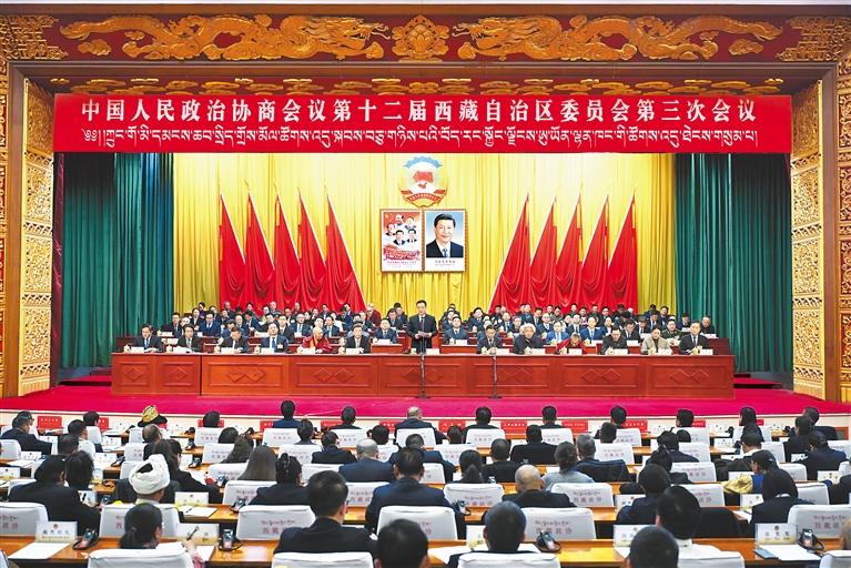 西藏自治區(qū)政協(xié)十二屆三次會(huì)議圓滿完成各項(xiàng)議程,21日下午在拉薩閉幕。會(huì)議號(hào)召,要更加緊密地團(tuán)結(jié)在以習(xí)近平同志為核心的黨中央周?chē)煌献鞒跣?,凝聚奮斗力量,努力推動(dòng)西藏長(zhǎng)治久安和高質(zhì)量發(fā)展,為譜寫(xiě)中國(guó)式現(xiàn)代化西藏篇章作出新的更大貢獻(xiàn)。