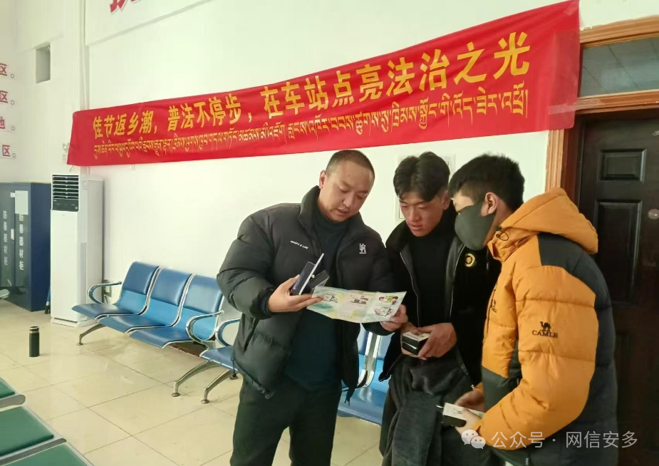 2025年1月23日,在蛇年春節(jié)返鄉(xiāng)潮的高峰,安多縣普法辦聯(lián)合縣禁毒辦在安多火車站開展以“佳節(jié)返鄉(xiāng)潮,普法不停步,在車站點(diǎn)亮法治之光”為主題的宣傳活動(dòng),為歸心似箭的旅客們送上了一份特殊的“法律年貨”。