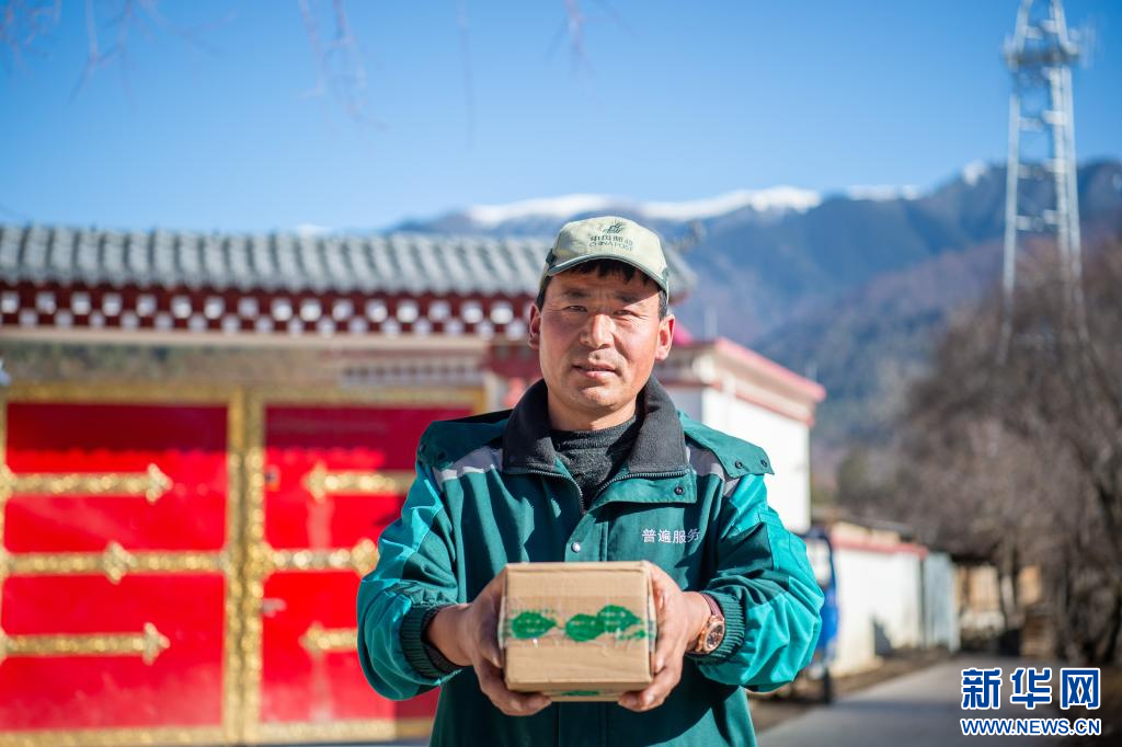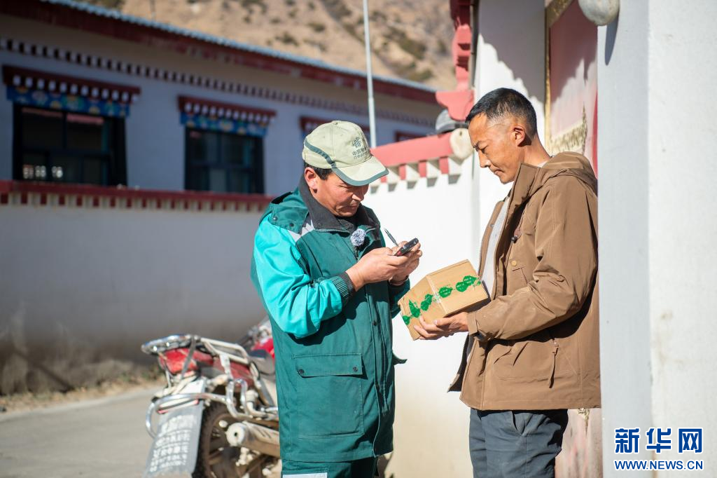 1月19日,郵遞員索朗次仁在送快遞。新華網(wǎng) 旦增努布 攝