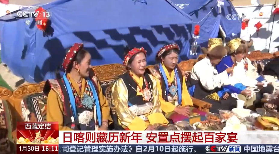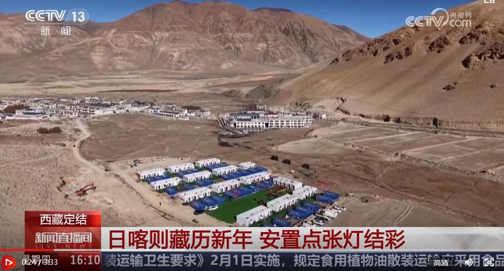 總臺央視記者 王莉:我現(xiàn)在是在日喀則定結縣的切村,今天是這里藏歷年的大年初一,是當?shù)匾荒曛凶盥≈亍⒆钪匾膫鹘y(tǒng)佳節(jié)??梢钥吹?,現(xiàn)場已經(jīng)裝點得很有節(jié)日的氛圍,家家戶戶都貼上了春聯(lián),掛上了喜慶的燈籠和福字。雖然今年在安置點里過年,但人們依然保持著傳統(tǒng)的習俗,在這一天,一定要穿上隆重的藏裝,一起吃一頓團圓飯。