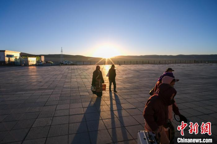 2月3日日出時(shí)分,西藏那曲安多民眾到達(dá)安多火車站,準(zhǔn)備進(jìn)站乘車。中新社記者 江飛波 攝