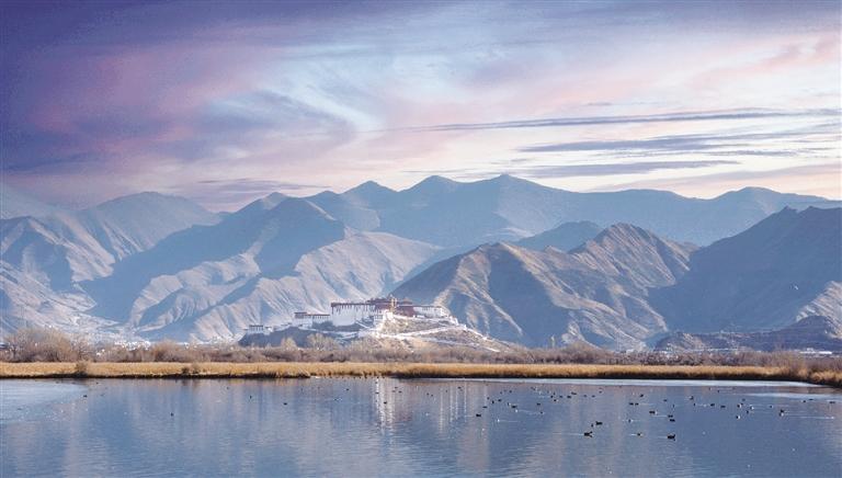 如今,踏入拉魯濕地,近處中干渠水質(zhì)清澈、水量充沛,在蘆葦蕩下靜靜流淌,水面上赤麻鴨悠然嬉戲;遠(yuǎn)處布達(dá)拉宮巍峨聳立。濕地空氣中彌漫著泥土與植物的芬芳,令人心曠神怡。這里已成為喧鬧市區(qū)中的一片“世外桃源”,是市民和游客游玩打卡的熱門之選。市民張女士表示,每到周末,她都會(huì)帶著家人前來(lái)散步,這里清新的空氣和優(yōu)美的環(huán)境非常適合老人健身休閑。