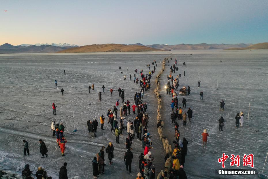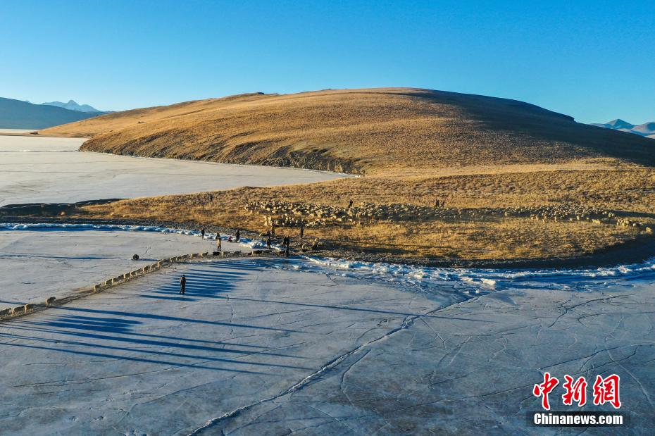 西藏普莫雍錯(cuò)迎來(lái)冰上趕羊“盛宴”