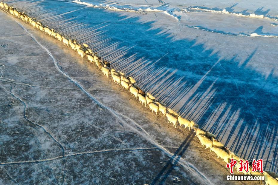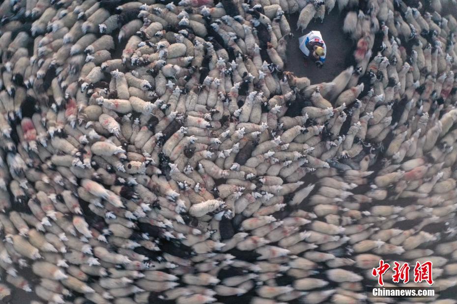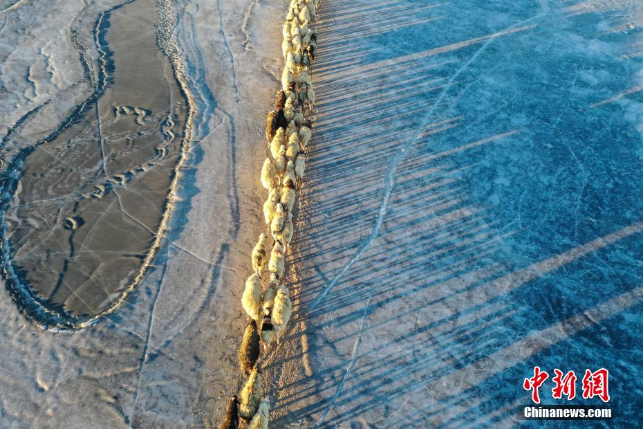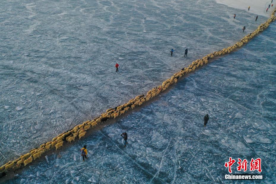 2月7日,西藏山南市浪卡子縣推瓦村1400多只羊通過(guò)普莫雍錯(cuò)冰湖,前往湖心島。據(jù)悉,位于西藏山南市浪卡子縣的推瓦村,平均海拔約5070米,是世界上海拔最高的行政村,以牧業(yè)為主。由于推瓦村海拔高、夏季短,草場(chǎng)無(wú)法為羊群提供充足的過(guò)冬飼料,因此,每年高原最冷的時(shí)候,推瓦村牧民會(huì)把羊群趕到普莫雍錯(cuò)水草豐茂的湖心島,依靠島上的草料度過(guò)最寒冷的冬期。圖為牧民準(zhǔn)備趕羊轉(zhuǎn)場(chǎng)度過(guò)最寒冷冬期。(無(wú)人機(jī)照片)中新社記者 貢嘎來(lái)松 攝