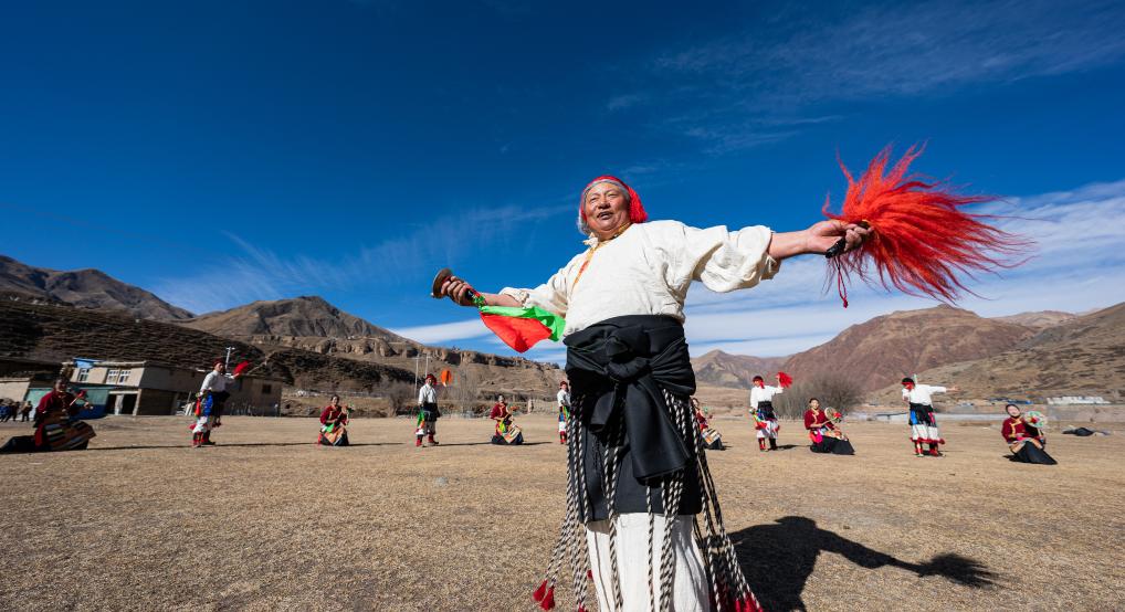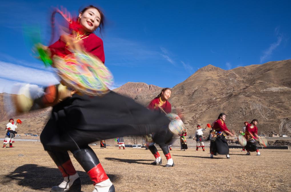新年伊始,在西藏昌都市丁青縣尺犢鎮(zhèn)的草壩上,烏巴村文藝演出隊正在熱火朝天地排練。盡管寒風凜冽,但激昂的鼓點和熱烈的音樂,讓這片土地充滿了生機與活力。