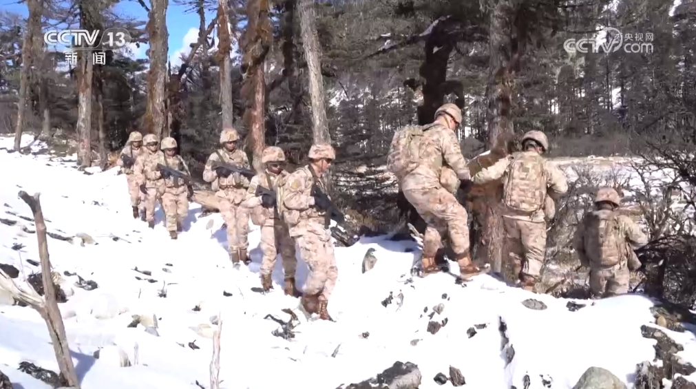 西藏軍區(qū)“墨脫戍邊模范營”某連崔中駿:“一開始聽班長講,我以為比較夸張。但是實際上自己體驗了之后,確實挺累的,路也比較難走,坡比較陡,雪也比較厚,挺滑的,走著走著還容易陷到樹洞里面?!?/p>