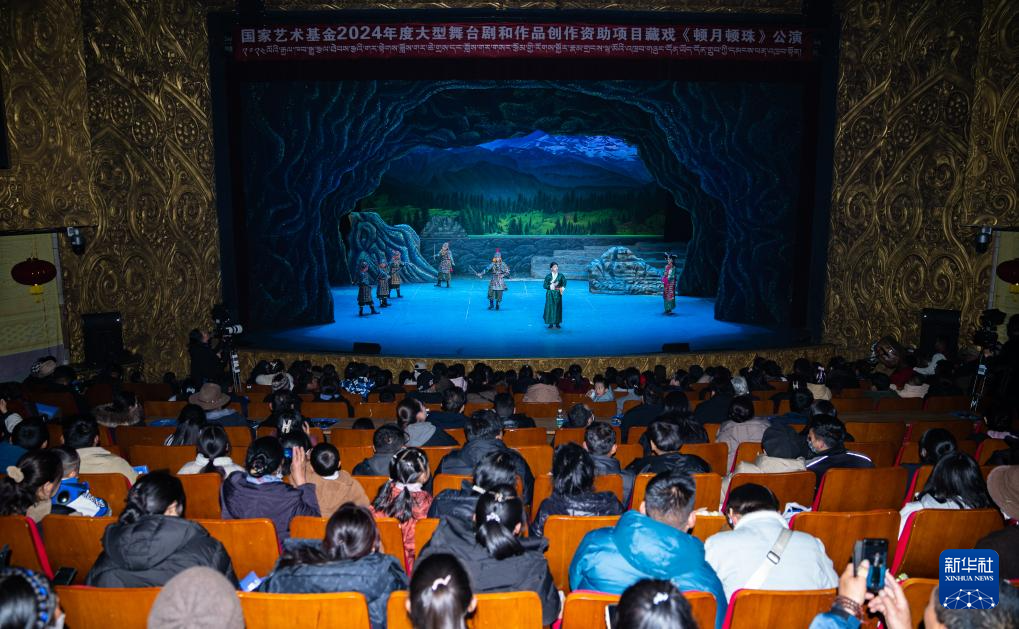 西藏首部少兒舞臺(tái)劇藏戲《頓月頓珠》演出現(xiàn)場(chǎng)(2月11日攝)。新華社記者 丁增尼達(dá) 攝