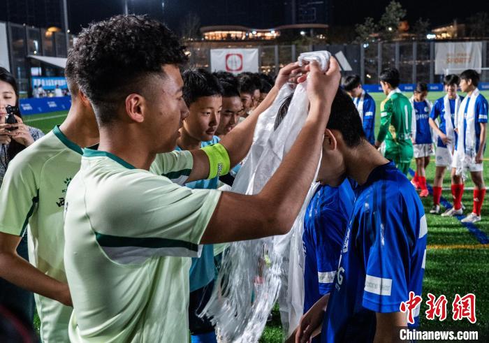 18日晚的香港西沙GO PARK球場(chǎng),一場(chǎng)“跨越山海”的足球比賽正在此間舉行,西藏青少年組成雪域雛鷹隊(duì)與香港東方體育會(huì)足球隊(duì)U16隊(duì)在綠茵場(chǎng)上以球會(huì)友。