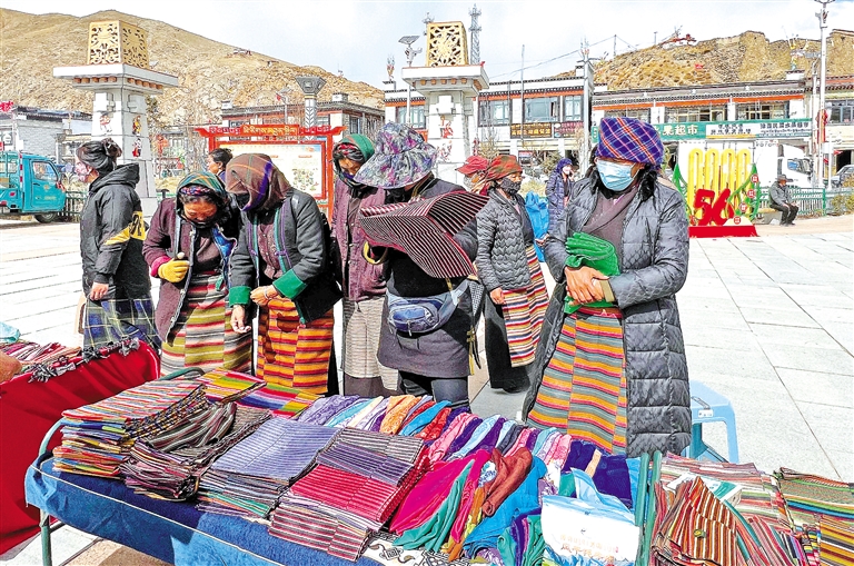 此次活動共有20戶參展商鋪參與。商品種類豐富多樣,傳統(tǒng)藏式年貨、特色手工藝品、各類服飾、日用百貨,一應(yīng)俱全,充分滿足了廣大群眾對年貨的多樣化采購需求?;顒娱_幕式當(dāng)天,現(xiàn)場銷售額達(dá)5.09萬元。