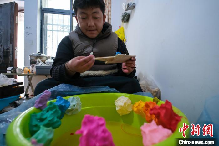 “我大概從初中一年級開始,每年藏歷新年前都和父親來拉薩捏酥油花,除了種地和打工,酥油花是我們家的主要收入來源?!?月20日,在拉薩市城關區(qū)吉崩崗街道一出租房內,24歲的大學生扎西歐珠對中新社記者講述寒假捏制酥油花的經歷。