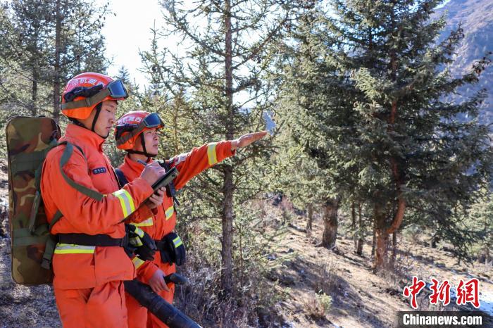 圖為2月26日,西藏左貢森林消防在林區(qū)收集信息。姚天銳 攝