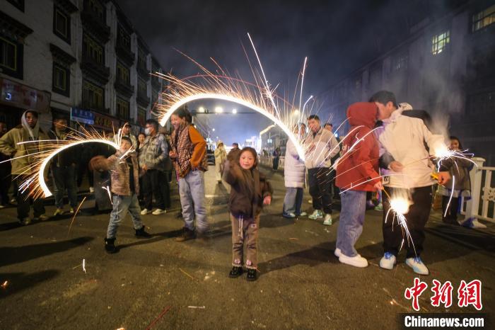 藏歷新年是西藏傳統(tǒng)民俗活動,也是中國國家級非物質(zhì)文化遺產(chǎn)。2月27日,西藏迎來一年一度的藏歷新年古突夜(類似春節(jié)的除夕),如今過古突夜,西藏民眾在點燃火把的同時,也會燃放煙花,古城拉薩煙花璀璨。圖為2月27日晚,孩子們在拉薩老城區(qū)街頭燃放煙花,慶祝藏歷新年的到來。中新社記者 江飛波 攝