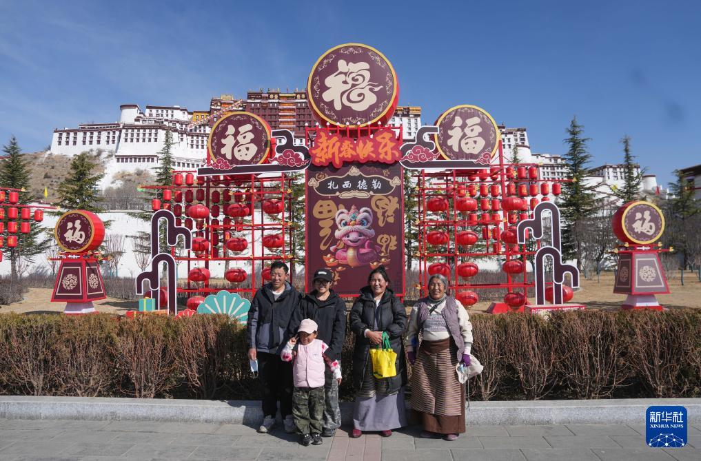 2月28日,來自西藏那曲市比如縣的一家人在拉薩布達拉宮前合影留念。
