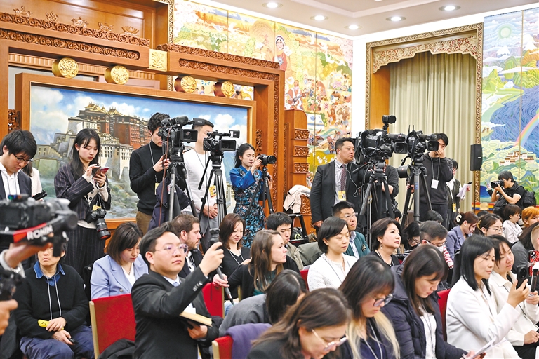 3月6日上午,十四屆全國人大三次會議西藏代表團舉行開放團組活動。這是活動現(xiàn)場。