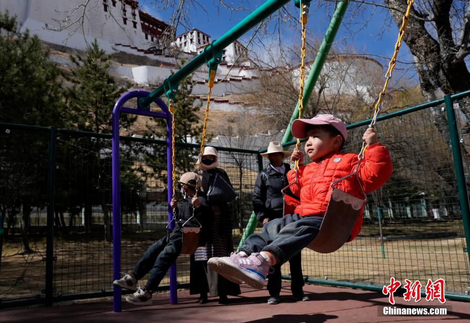 3月13日,小朋友在西藏拉薩宗角祿康公園蕩秋千。坐落于布達(dá)拉宮腳下的宗角祿康公園是拉薩民眾戶(hù)外活動(dòng)的一大場(chǎng)所。隨著3月春回拉薩,大家來(lái)到公園散步、健身,一片春意盎然的景象。中新社記者 李林 攝