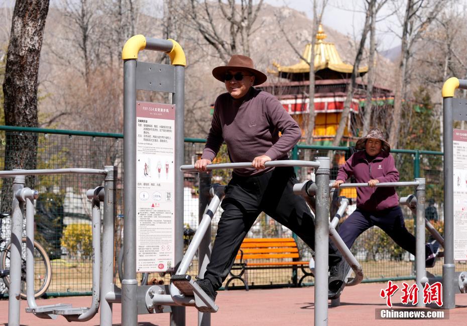 3月13日,民眾在西藏拉薩宗角祿康公園健身。坐落于布達(dá)拉宮腳下的宗角祿康公園是拉薩民眾戶(hù)外活動(dòng)的一大場(chǎng)所。隨著3月春回拉薩,大家來(lái)到公園散步、健身,一片春意盎然的景象。中新社記者 李林 攝