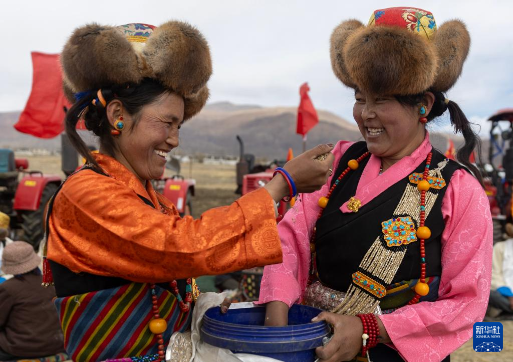 3月16日,西藏日喀則市拉孜縣曲下鎮(zhèn)土林村春耕儀式現(xiàn)場(chǎng)。新華社記者 姜帆 攝