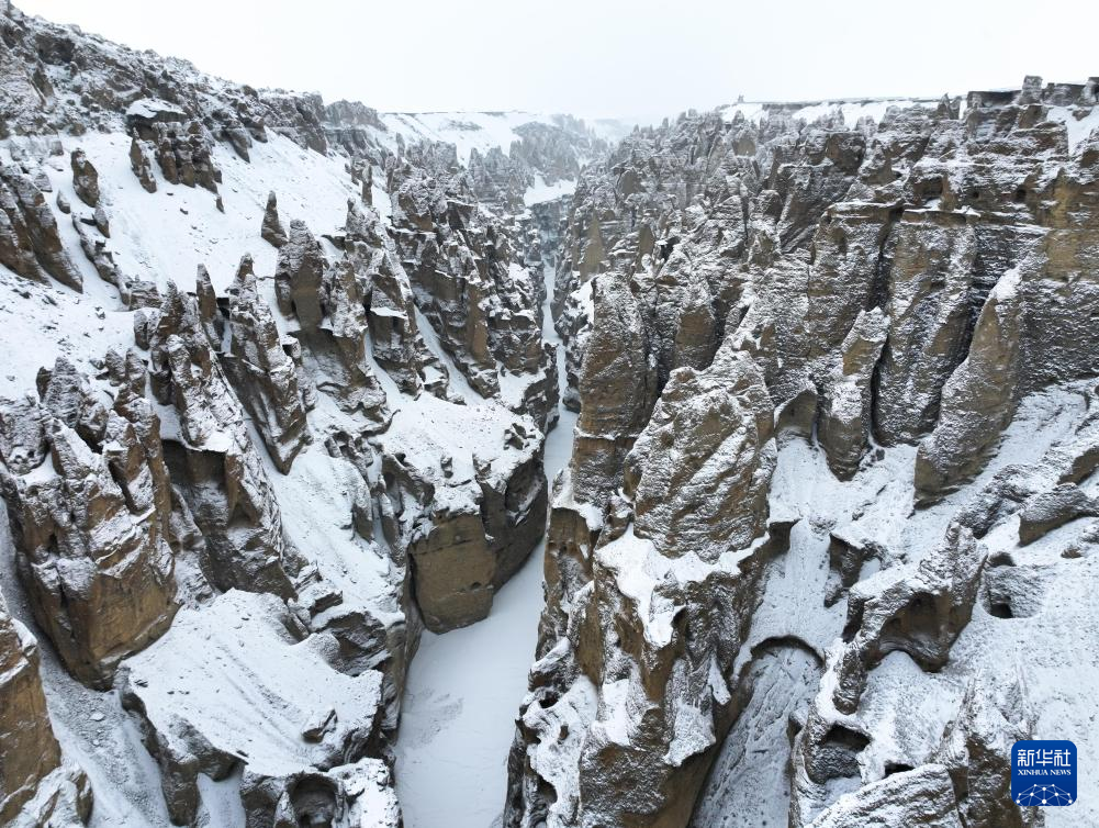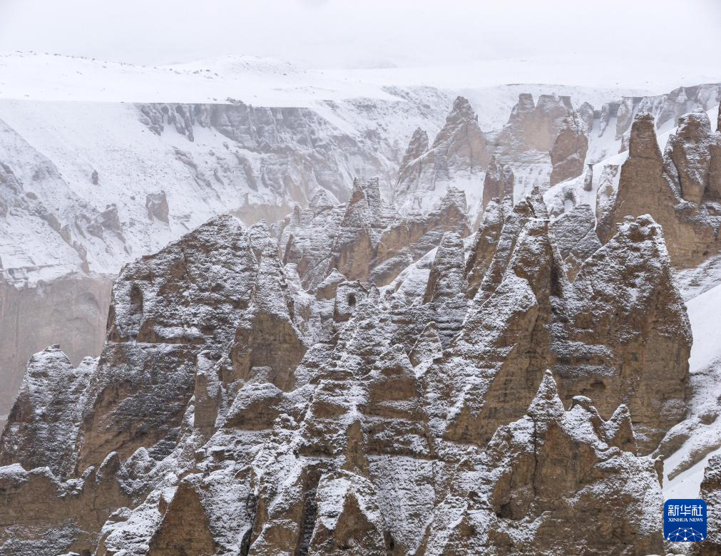 奇林峽位于喜馬拉雅山北麓日喀則市定結(jié)縣瓊孜鄉(xiāng)牧村。冰川雪水的侵蝕和沖刷,造就了谷內(nèi)土林狀自然景觀,在白雪的覆蓋下更顯棱角分明。