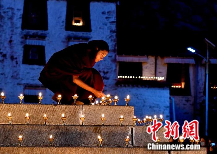 2024年12月24日即藏歷十月二十四日,是藏傳佛教格魯派傳統(tǒng)宗教活動“色拉協(xié)曲”。為紀(jì)念色拉寺創(chuàng)建人釋迦也失,西藏拉薩色拉寺內(nèi)點燃酥油燈。 中新社記者 李林 攝