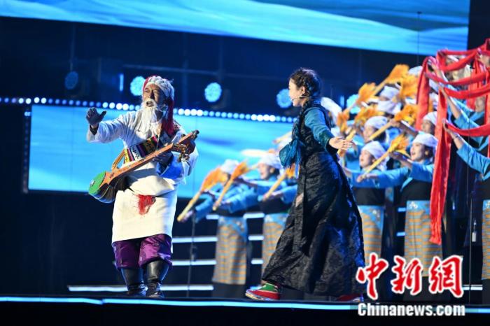 2025年3月27日,為紀(jì)念西藏百萬農(nóng)奴解放66周年,“盛世中國 幸福西藏”拉薩市紀(jì)念西藏百萬農(nóng)奴解放66周年群眾合唱比賽,在拉薩市群眾文化體育中心上演。圖為拉薩市林周代表隊演唱。中新社記者 貢嘎來松 攝