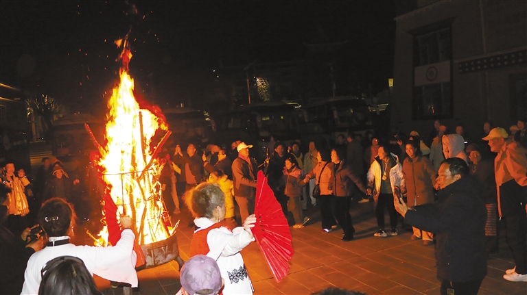 圖為游客和當?shù)厝罕娫隗艋鹎肮餐鹞琛?記者 武沛濤 攝