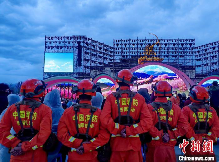 圖為消防員在林芝第二十二屆桃花旅游文化節(jié)開幕式上執(zhí)勤。李國燾 攝