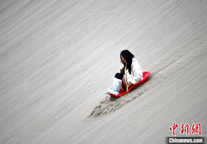 4月4日,游客在西藏米林市丹娘佛掌沙丘景點體驗滑沙。當(dāng)日是清明假期第一天,眾多游客在該地游玩,樂享美好春光。丹娘佛掌沙丘位于米林市丹娘鄉(xiāng),因沙丘倒影在雅魯藏布江中形成雙手合十的形狀,故被譽為佛掌沙丘。中新社記者 李林 攝
