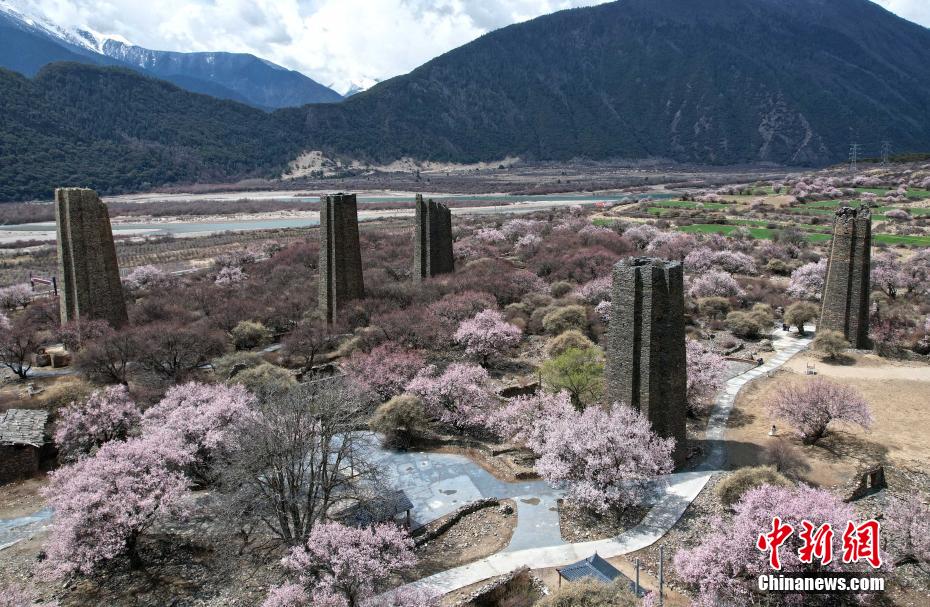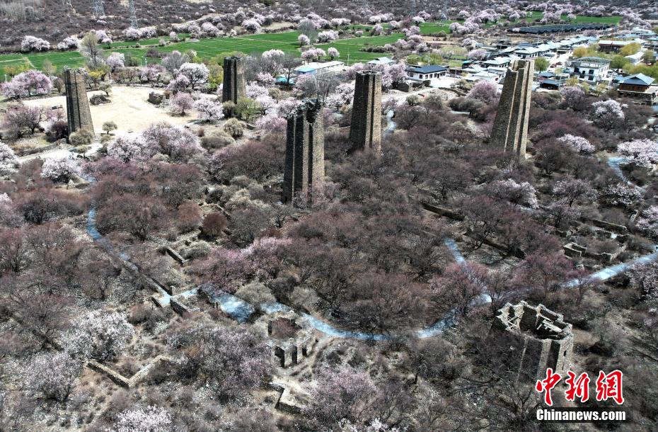 秀巴古堡位于西藏林芝市工布江達(dá)縣,是古代的軍事設(shè)施,距今已有1600多年的歷史。時(shí)下,古堡之下遍布的桃花競相綻放,粉白桃花點(diǎn)綴著滄桑古堡,景色壯麗。圖為4月5日,秀巴古堡群下桃花綻放。(無人機(jī)照片)中新社記者 李林 攝