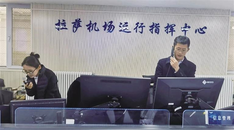 拉薩貢嘎國際機(jī)場(chǎng)運(yùn)行指揮中心緊急調(diào)度機(jī)位,保障旅客轉(zhuǎn)機(jī)。圖片由 張偉 提供