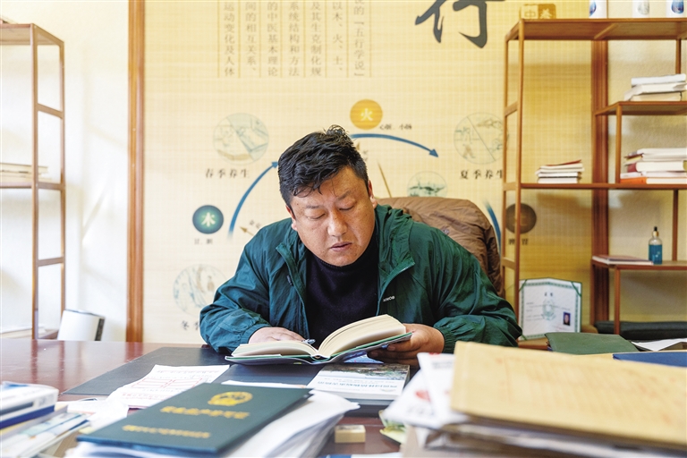 洛桑英巴抽空學習生態(tài)修復知識。記者 桑旦歐珠 攝