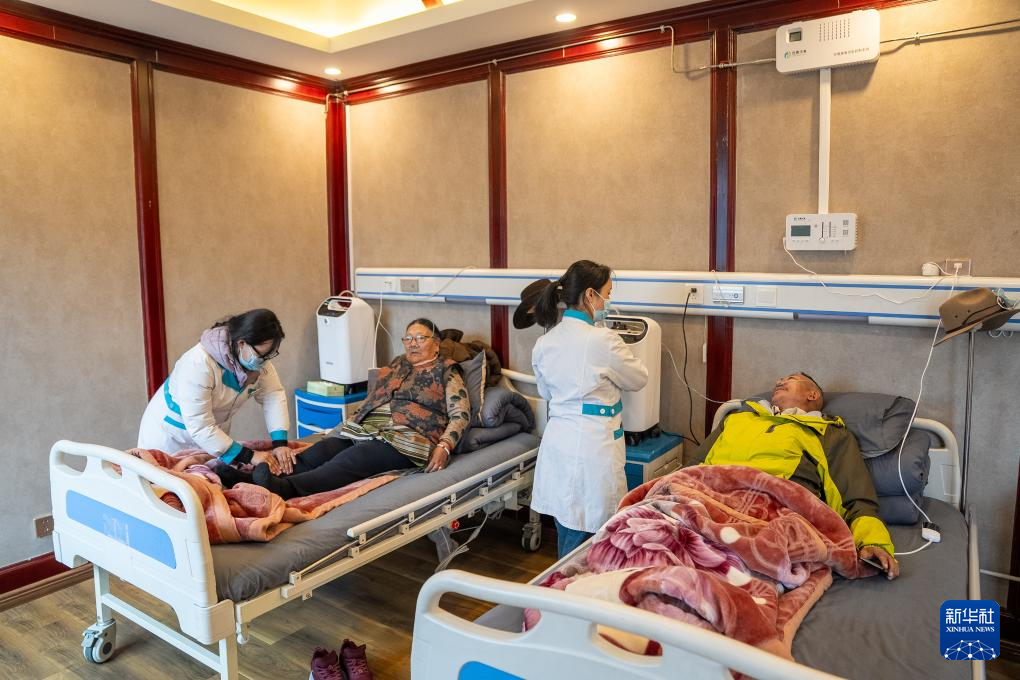 4月25日,老人們?cè)谀乔猩釁^(qū)老年人日間照料中心做理療。新華社記者 丁增尼達(dá) 攝