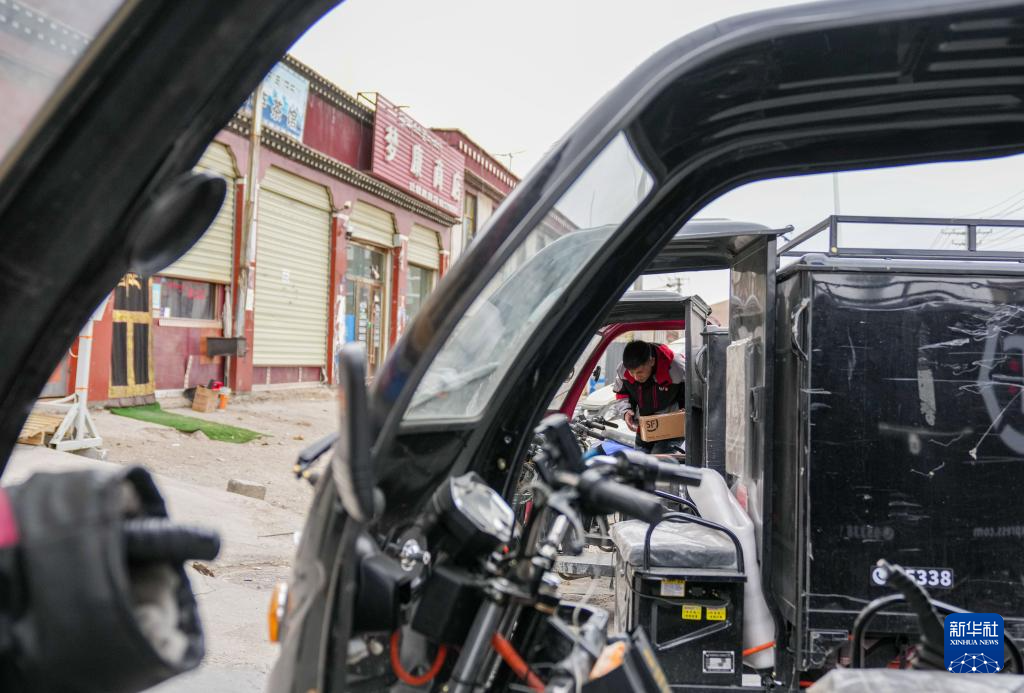 拉巴走出站點(diǎn)準(zhǔn)備去派件(4月24日攝)。新華社記者 丁增尼達(dá) 攝