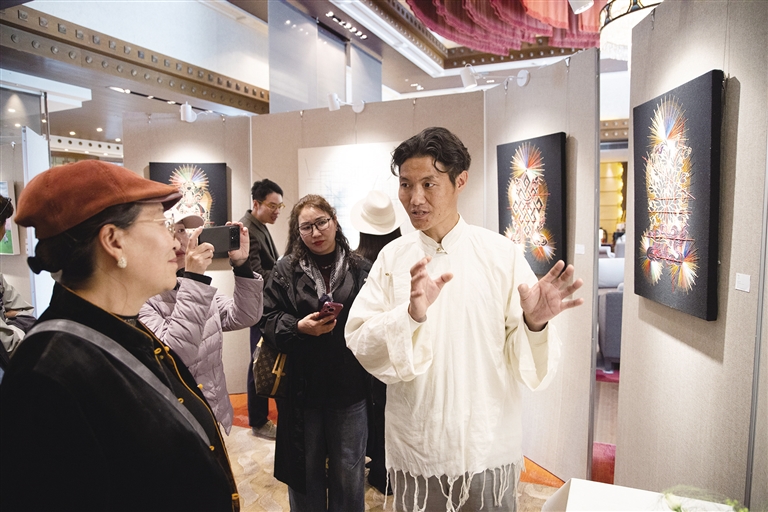 開幕儀式上,亞東縣委常務(wù)副書記、常務(wù)副縣長,上海市第十批援藏干部人才亞東聯(lián)絡(luò)小組組長李夏陽在致辭中表示,三十年間,在多批援藏干部的不懈努力與無私奉獻(xiàn)下,亞東縣在穩(wěn)定、發(fā)展、生態(tài)、強(qiáng)邊等各項(xiàng)工作上都取得了顯著成效,對本次參展藝術(shù)家們?yōu)閬問|縣文化傳播的傾情助力,致以誠摯的感謝。藝術(shù)家索喃次仁表示,未來將持續(xù)致力于將傳統(tǒng)技藝與現(xiàn)代審美融合,讓古老手工藝煥發(fā)新生,以藝術(shù)賦能助力鄉(xiāng)村振興。