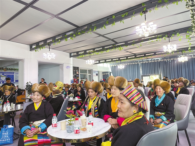 “山南瓊嘎頂·錦礱頤樂之家” 老年食堂揭牌儀式現場。 山南市乃東區(qū)澤當街道辦供圖
