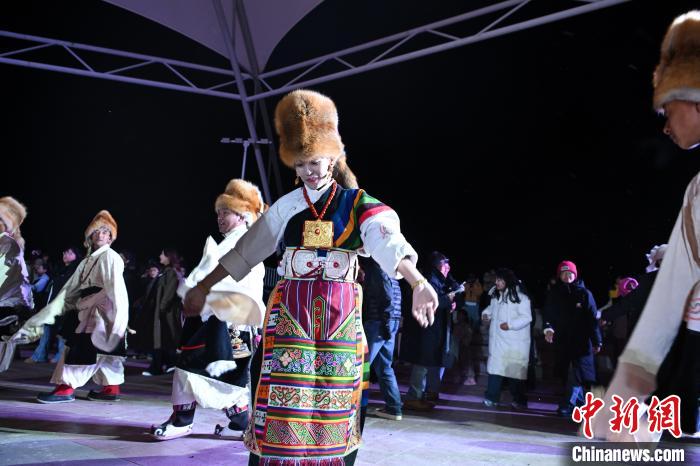 圖為“情定當(dāng)雄”篝火鍋莊晚會(huì)文藝演出現(xiàn)場(chǎng)。中新社記者 貢嘎來松 攝