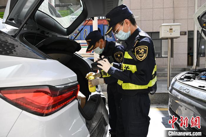 5月25日,在西藏自治區(qū)日喀則市吉隆縣的吉隆口岸,海關(guān)工作人員在對(duì)出口的國(guó)產(chǎn)新能源汽車進(jìn)行檢查。中新社記者 貢嘎來(lái)松 攝