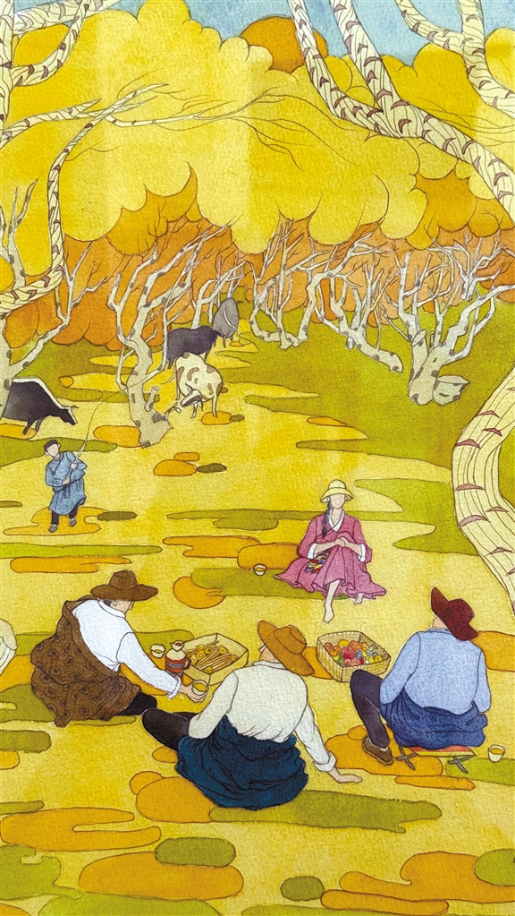 楊榕水彩作品《拉薩之秋》。