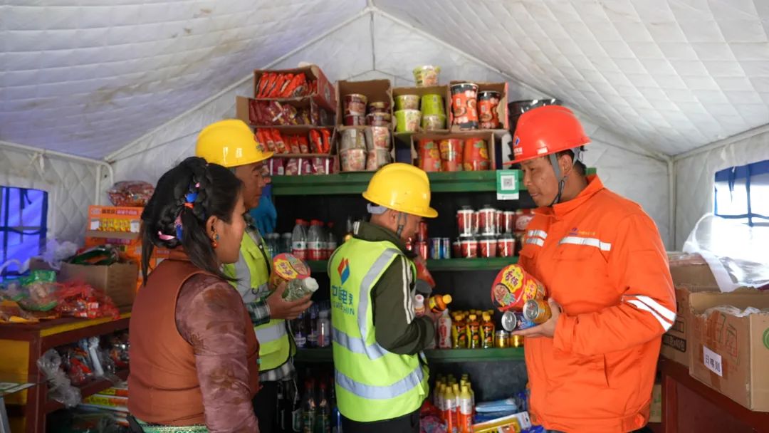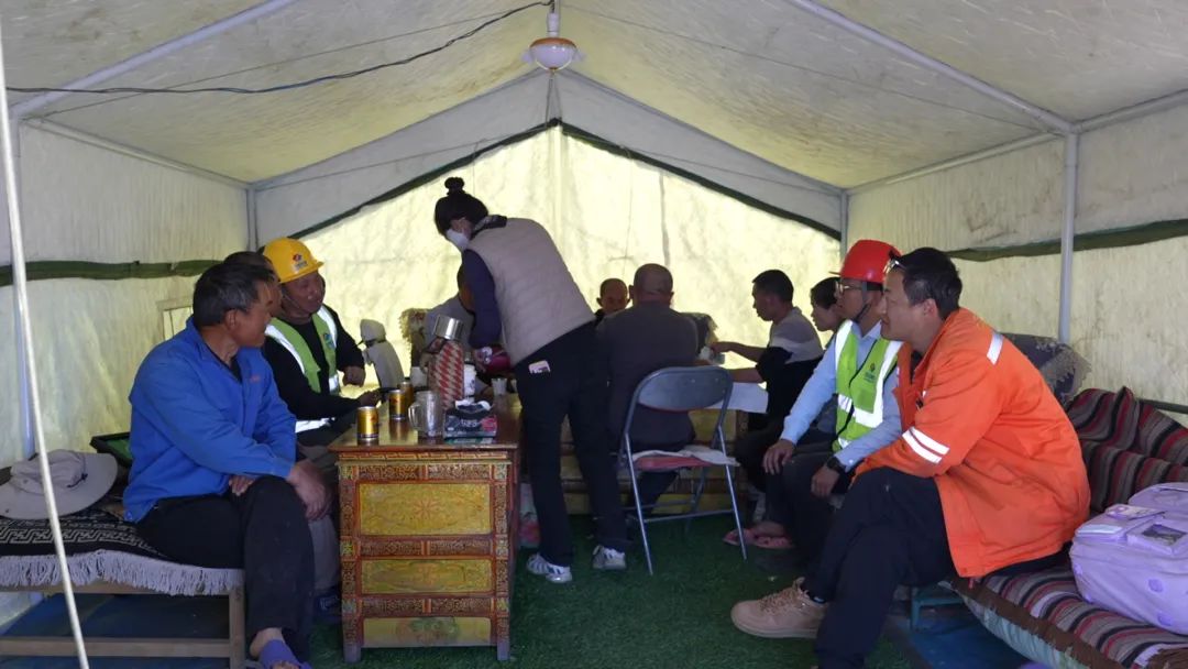 茶館主人巴桑,是村里有名的熱心人??粗┕と藛T為重建家園奔波,采購物資不便,她果斷在項目部生活區(qū)旁開起小賣鋪。與工人們熟絡(luò)后,她又搬來桌椅,搭起簡易帳篷茶館,只為給異鄉(xiāng)人一個歇腳放松之處。