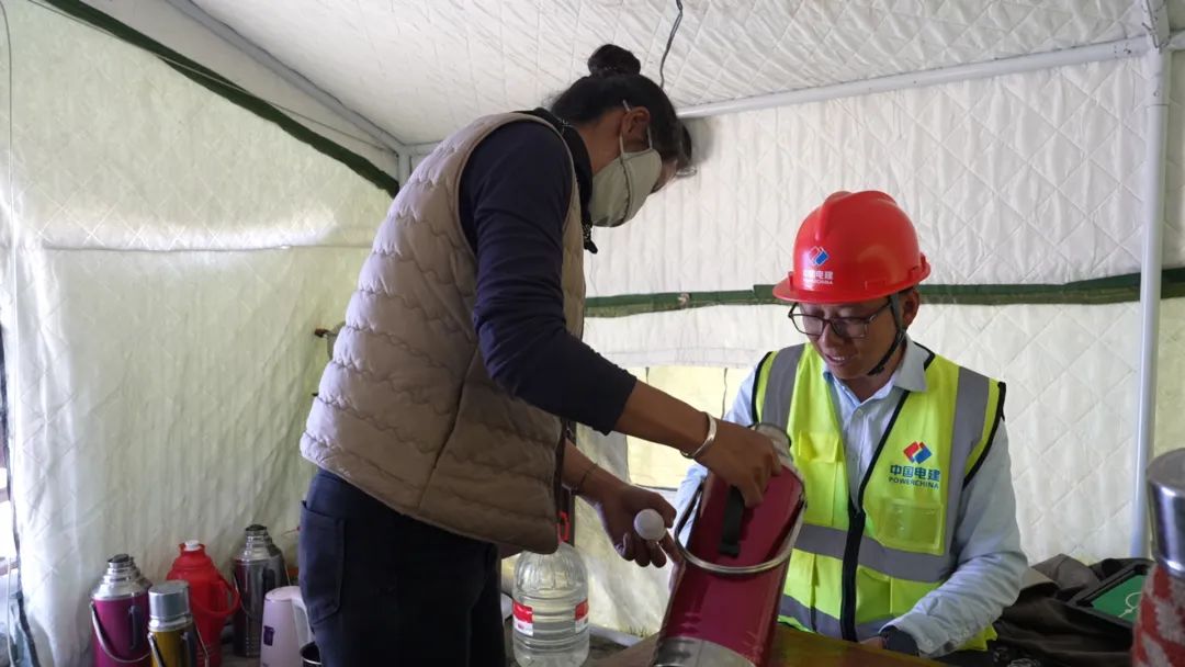 中國電建的楊磊技術(shù)精湛,是工地骨干;村民頓珠熟悉鄉(xiāng)土,是村民主心骨。雖有年齡差,但工作中的相互學(xué)習(xí)與默契配合,讓兩人成了忘年交。東北小伙董玉亮負(fù)責(zé)項目安全和用工,他急切地對頓珠說:“吉雄自然村明天需要2個小工和一臺挖掘機(jī),請村委會幫我協(xié)調(diào)一下。”“放心,人和機(jī)械明天一早一定準(zhǔn)時到。”頓珠立即電話安排,讓董玉亮安心。巴桑也趕忙為董玉亮倒上他最愛的酥油茶。