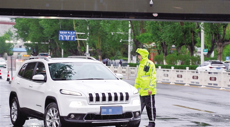 現(xiàn)場(chǎng)指揮送考生車(chē)輛。圖由拉薩交警提供